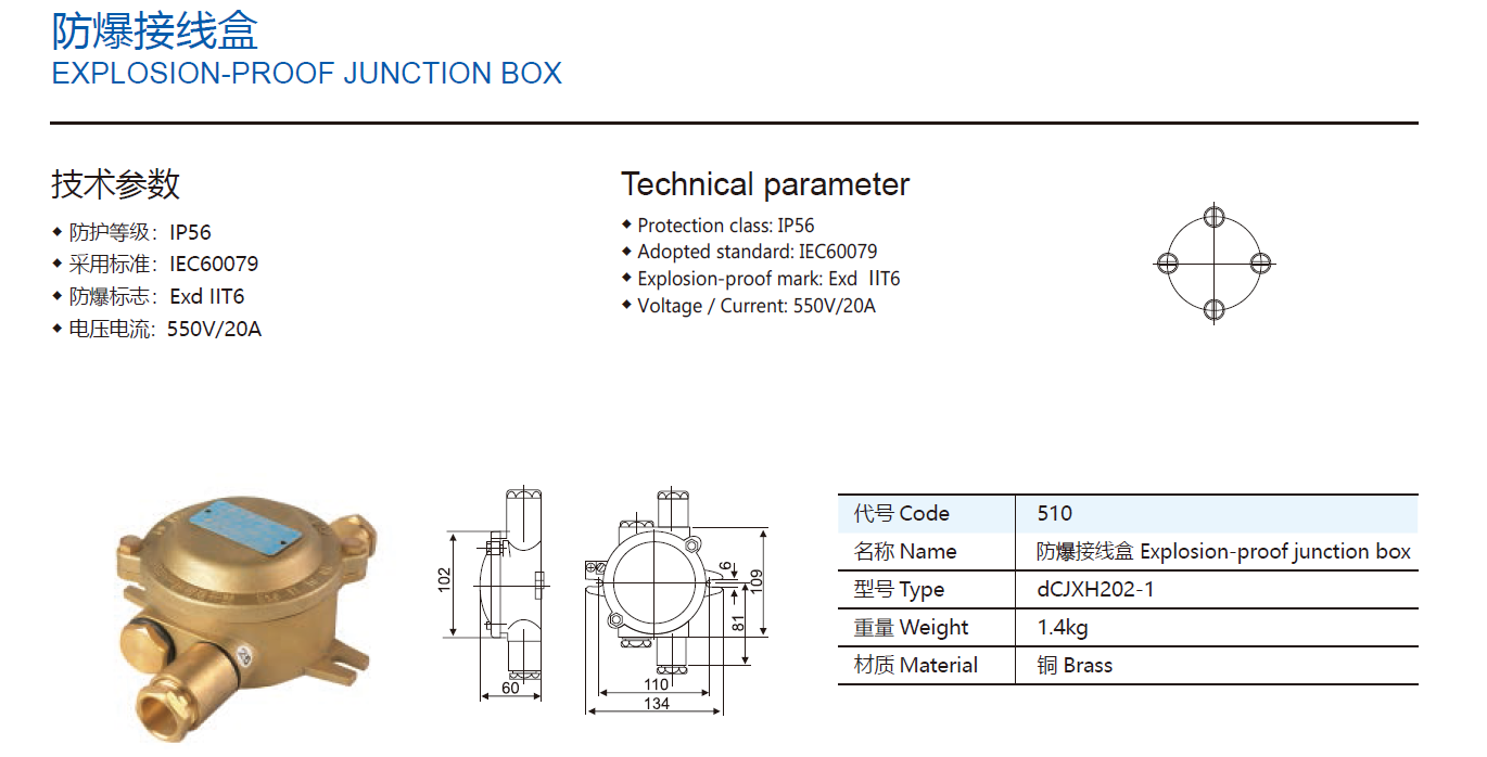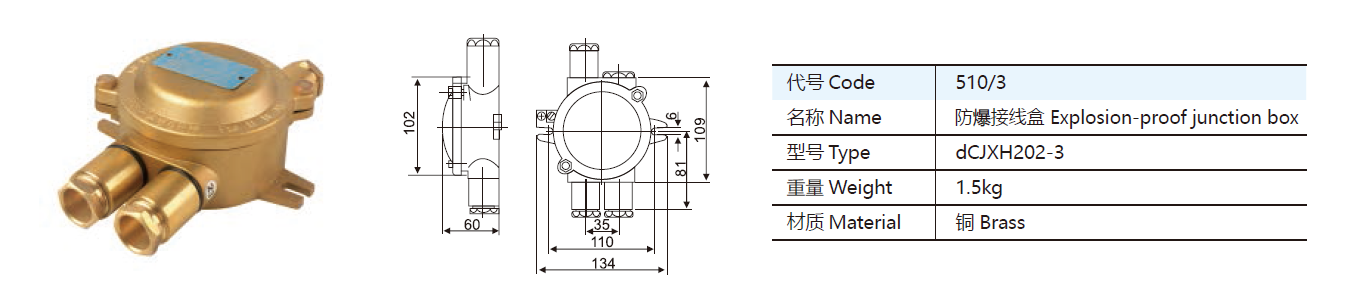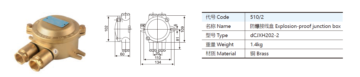 Brass Ex Proof Junction Box Exd II T6 550V/20A | DCJXH202-1