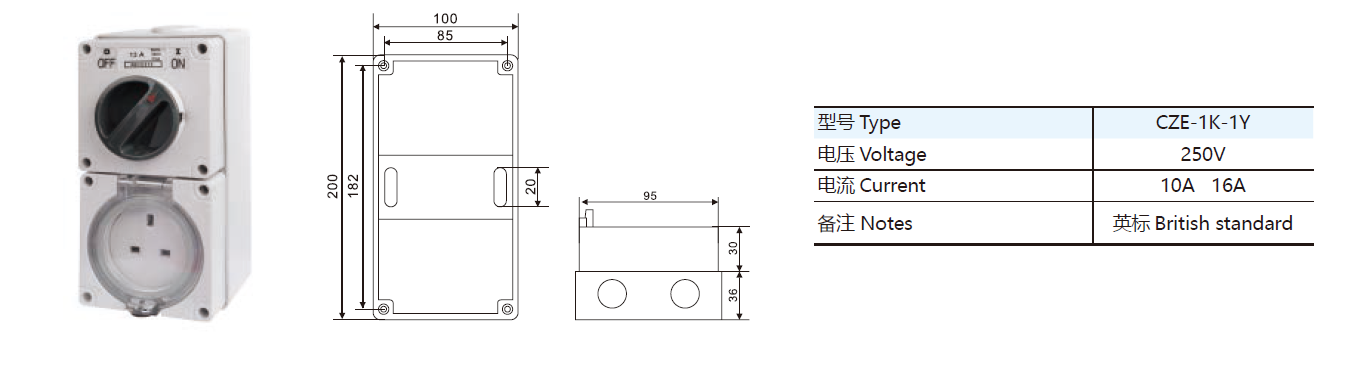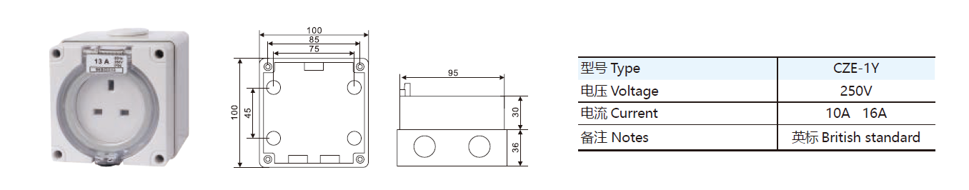 British Marine Cabin Switch Socket 250V 10A/16A | CZE-1K-1Y