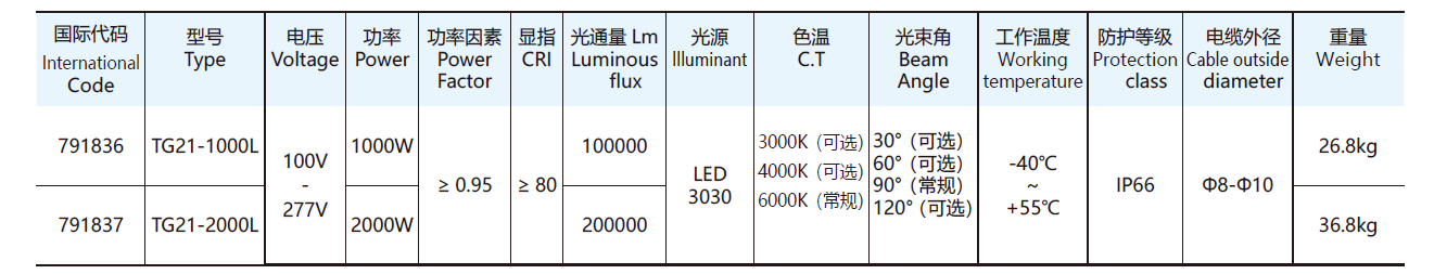Voltage: AC85-265V / 1000W / 120LM/W | Cabl: Φ10- Φ12