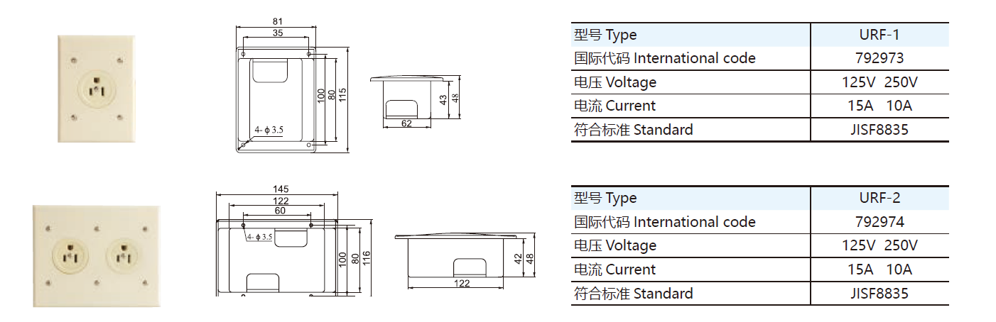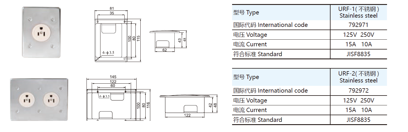 IMPA 792971 Stainless Steel Marine Cabin Socket 125-250V 10-15A