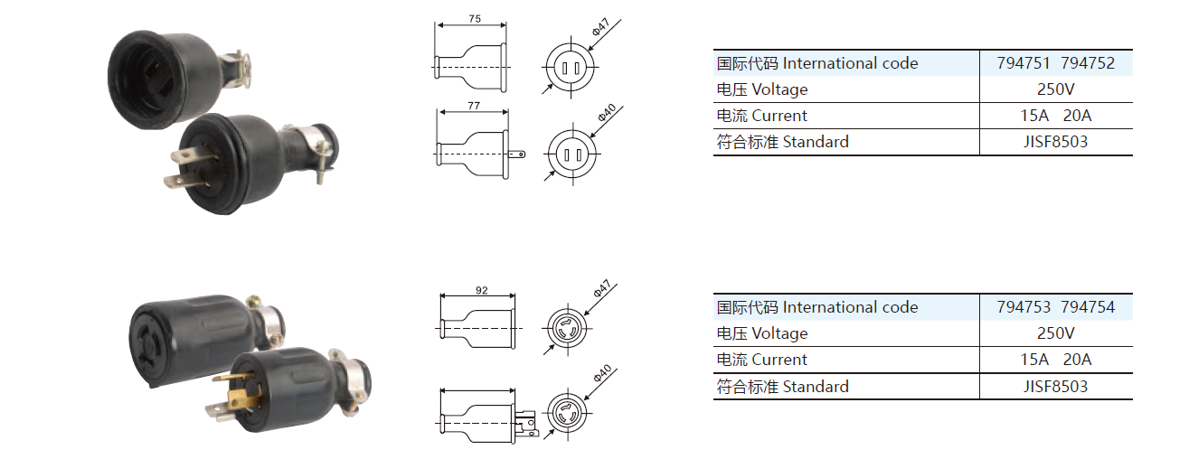 IMPA 794751 794752 Marine Cable Connector 2P 250V 15A 20A