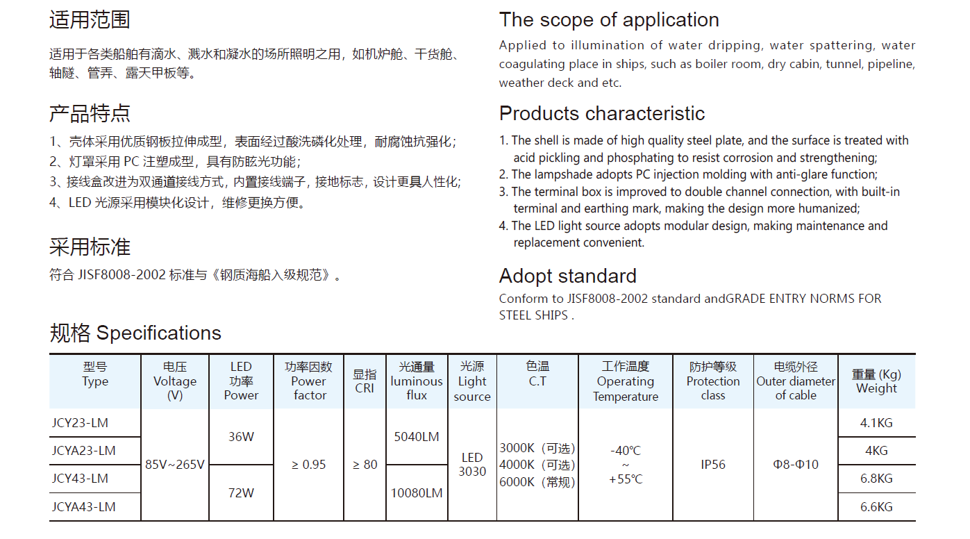 LED Marine Pendant Fluorescent Light 36W 72W | JCY23-LM