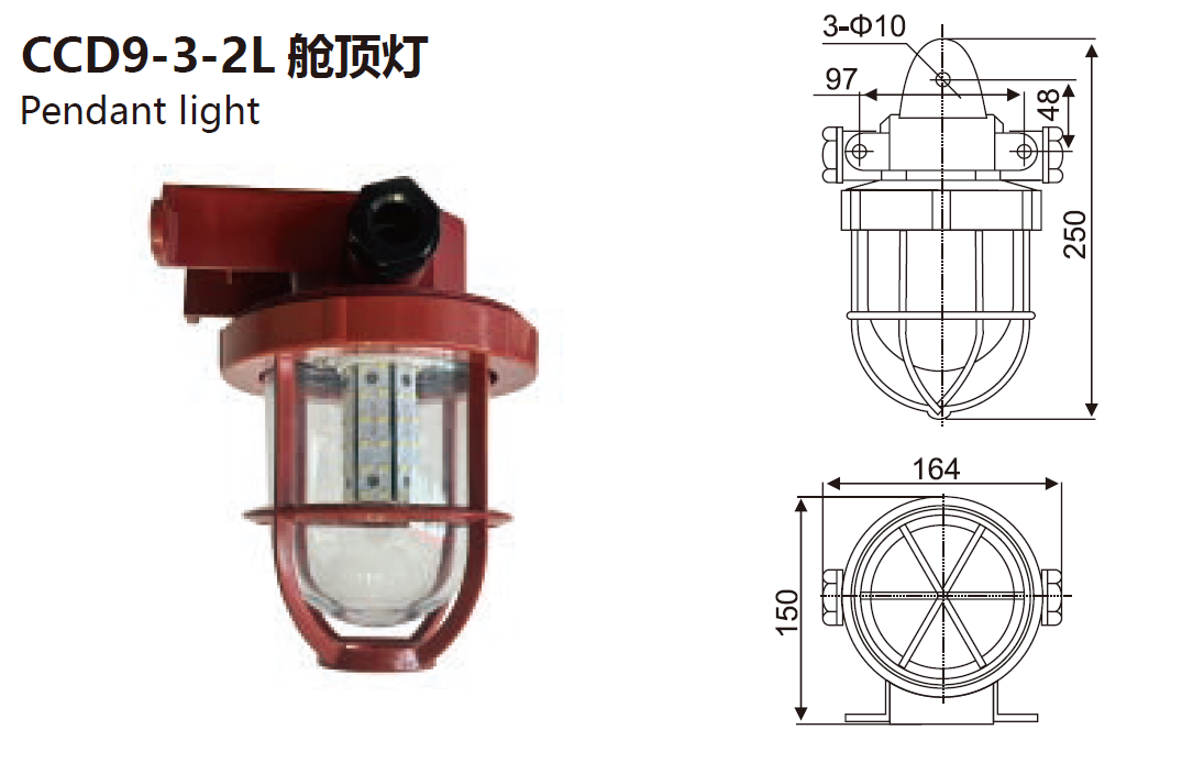 LED Plastic Marine Pendant Work Light 85V-265V 9W | CCD9-3-2L