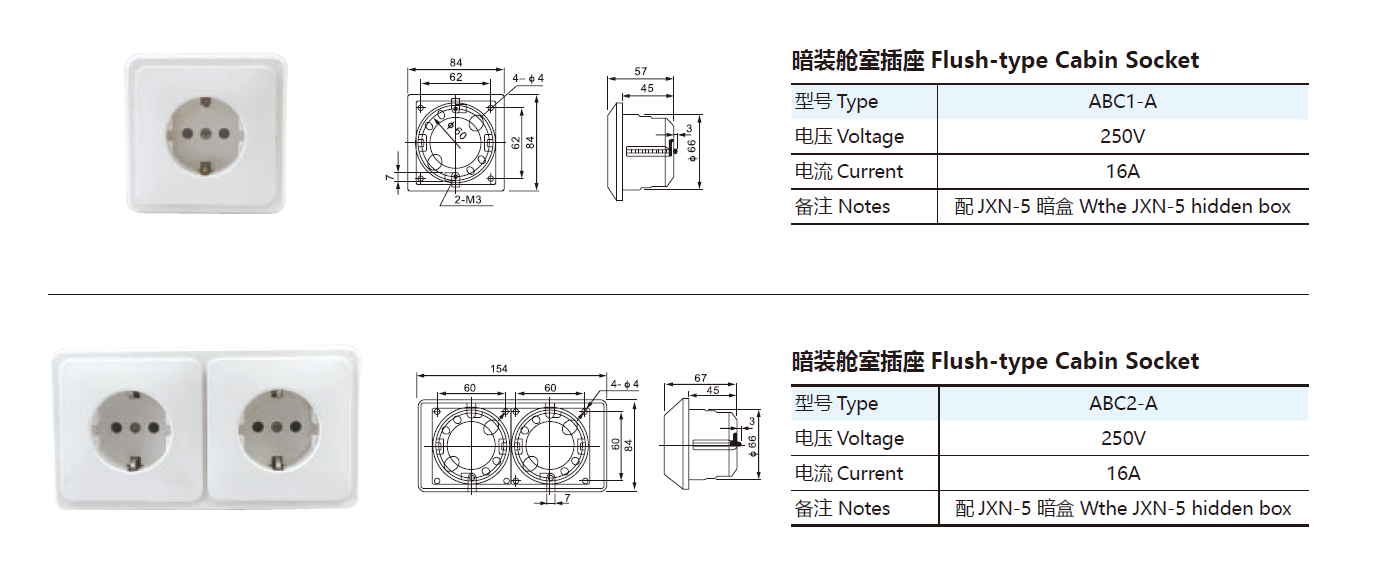 Marine Cabin Socket Surface Type 250V/16A | ABC1-AM