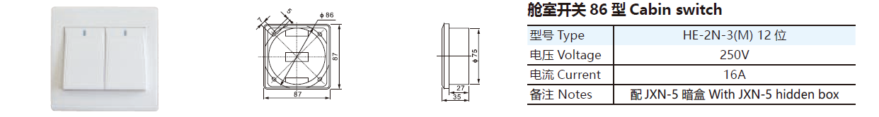 Marine Cabin Switch Flush Type 250V/16A | HE-2N-1