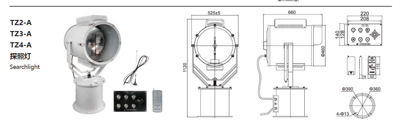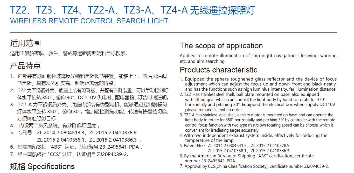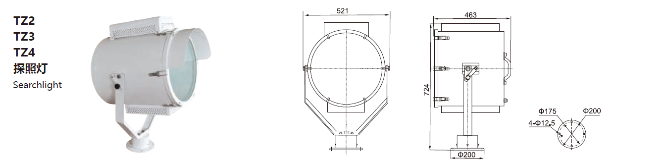 SUS304 Marine Searchlight Xenon 2000W | TZ2