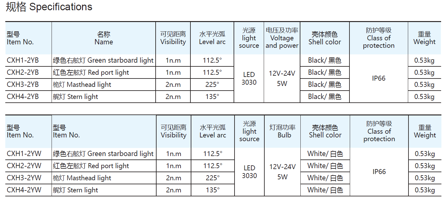 | Item Type | Starboard Light | Port Light | Masthead Light | Stern Light |
