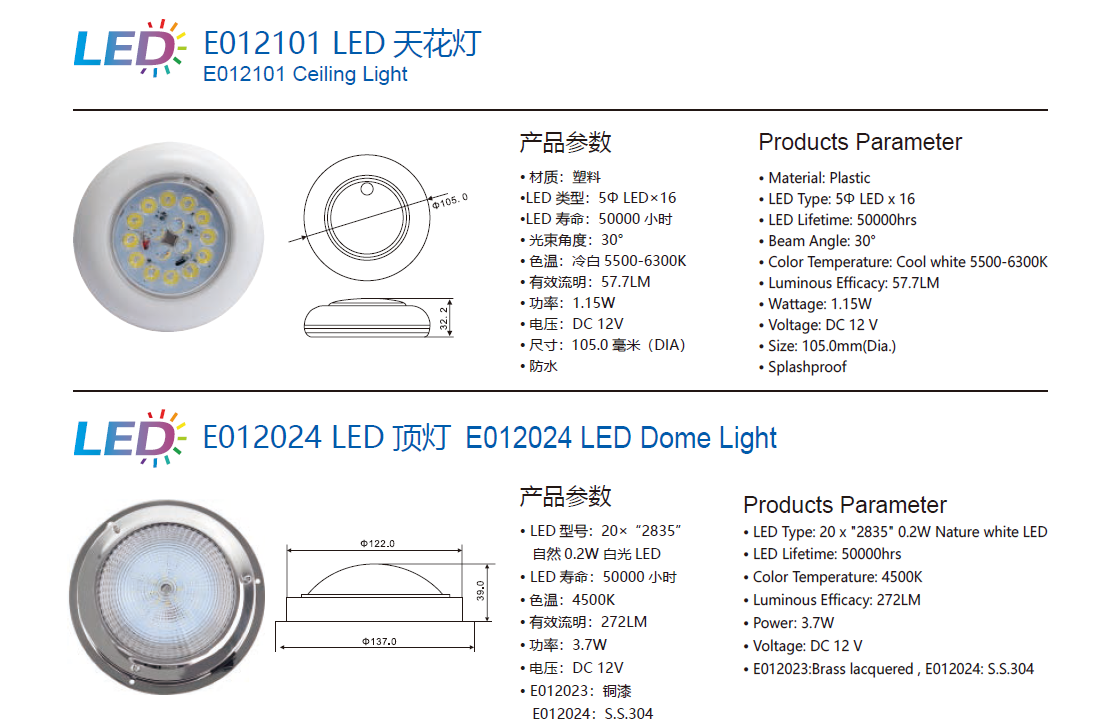 LED Yacht Dome Light 12V-24V 5W | CCD12-L