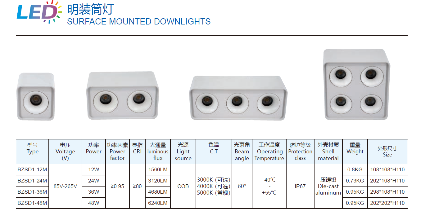 Surface Mounted LED Down Light 85V-265V 12W - 48W | BZSD1-M